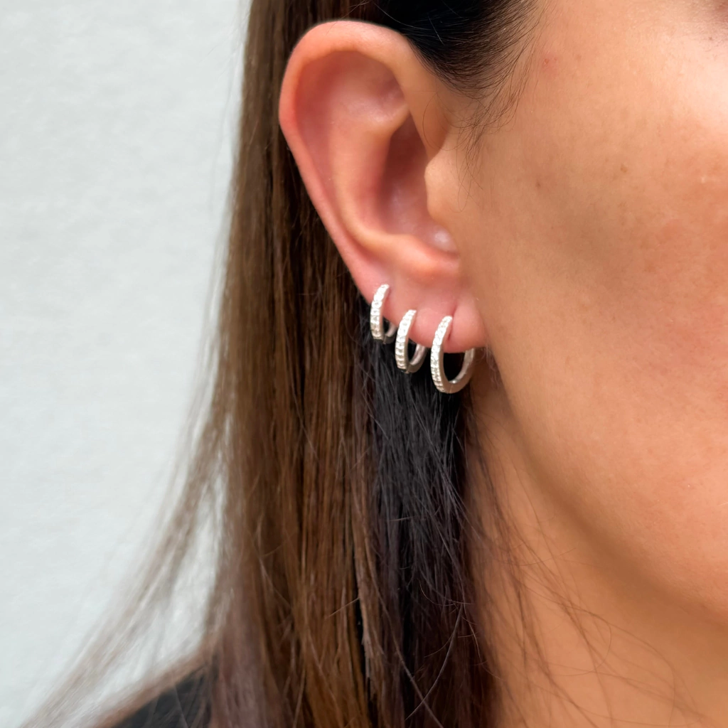 Brilho e sofisticação em dose tripla. Este trio de argolas é uma joia em prata cravejada com micro zircônias que refletem a luz com intensidade e elegância. Com três tamanhos diferentes, é perfeito para criar composições modernas e versáteis, adicionando um toque de glamour ao dia a dia.
